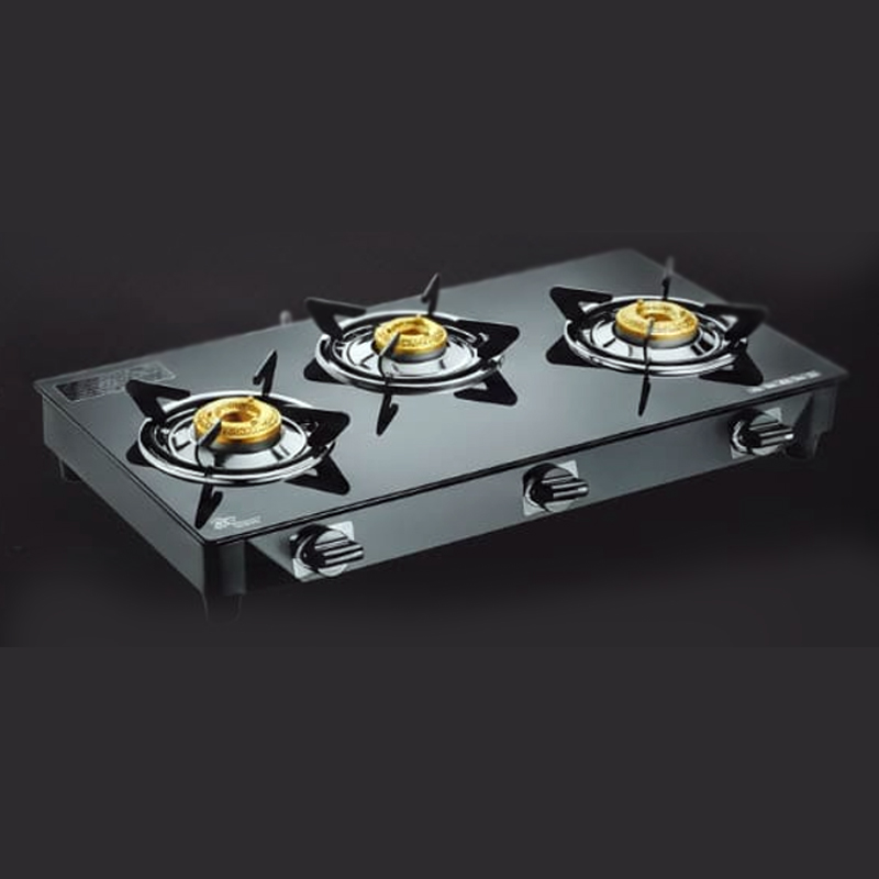 Three Burner Glass Oven Body, High Efficient Brass Burner, Rubber Leg, Unbreakable Knob,S/S Pan-Support